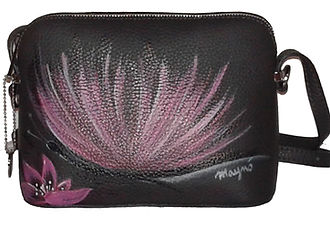 Borsa a mano in vera pelle Made in Italy realizzata con particolare lavorazione artigianale. Il colore di base della borsa è nero, impreziosita da dettagli color oro. Sopra sono dipinte esclusivamente a mano delle orchidee rosse. E' una borsa elegante e contemporaneamente pratica. Dotata di busta in cotone antipolvere maynò e charm/portachiavi Maynò. Dipinta con colori appositi per la pelle, altamente resistenti all'acqua e all'usura. L'interno è rivestito in cotone, dotata di tasche interne e portacellulare. Accompagnata da certificato di autenticità di lavorazione artigianale e manuale.